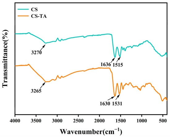 FTIR spectroscopy can elucidate the interactions between SC and TA. As shown in Figure 1, the absorption peak at 3271–3273 cm−1 corresponds to the stretching vibrations of N–H and O–H bonds, and the peak at 1630–1636 cm−1 is attributed to amide I, primarily resulting from the C = O stretching vibration, and the peak at 1514–1526 cm−1 is associated with amide II. This phenomenon primarily results from coupled vibrational modes involving N-H bond deformation and C-N bond elongation [27]. FTIR spectral analysis of SC-TA complexes revealed significant band shifts compared to native SC. In contrast, the amide II peak displayed a blueshift of 12 cm−1, likely due to the formation of hydrogen bonding interactions between SC and TA [28]. Additionally, an increase in peak intensity at amide I was observed for SC-TA, likely resulting from the binding of tannic acid (TA) to the C = O groups of the protein (hydrophilic interaction) [29].
