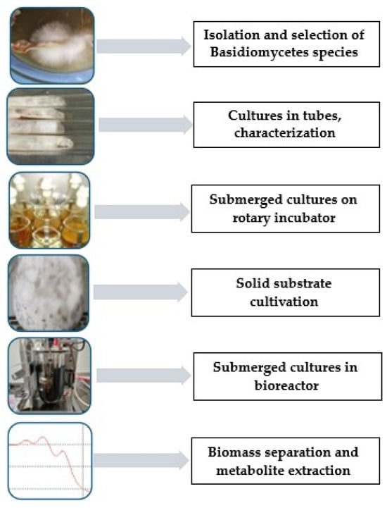 Macrofungi belonging to the phylum Basidiomycota, commonly called mushrooms, have been known since ancient times for their nutritional, medicinal, and dietary properties, having been consumed since antiquity in countries such as China, the Roman Empire, Greece, India, and others. In the present day, the largest quantities of edible and medicinal are obtained in China, Japan, the USA, Canada, and India [1,2].