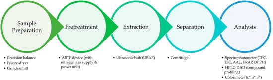 Following ARTP pretreatment, each powder sample underwent UAE under previously optimized conditions to recover target phytochemicals.