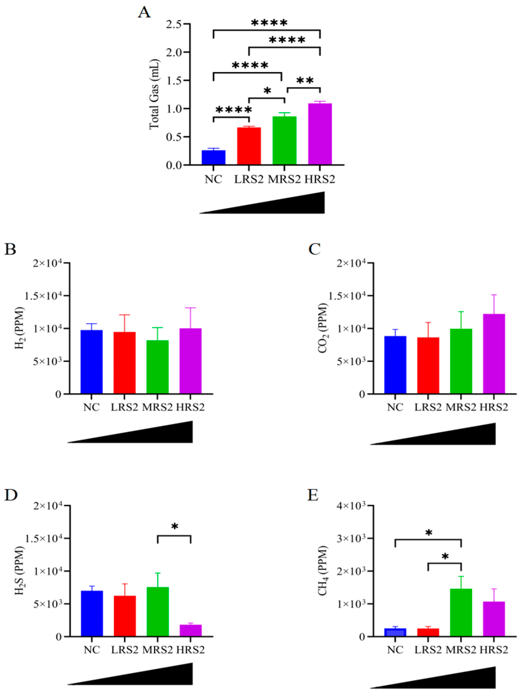3.3. RS2 Dose-Dependently Increased Total Gas Production