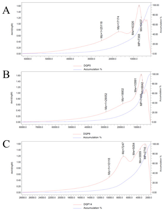 Molecular weights of DDP5 (A), DDP9 (B), and DDP14 (C).