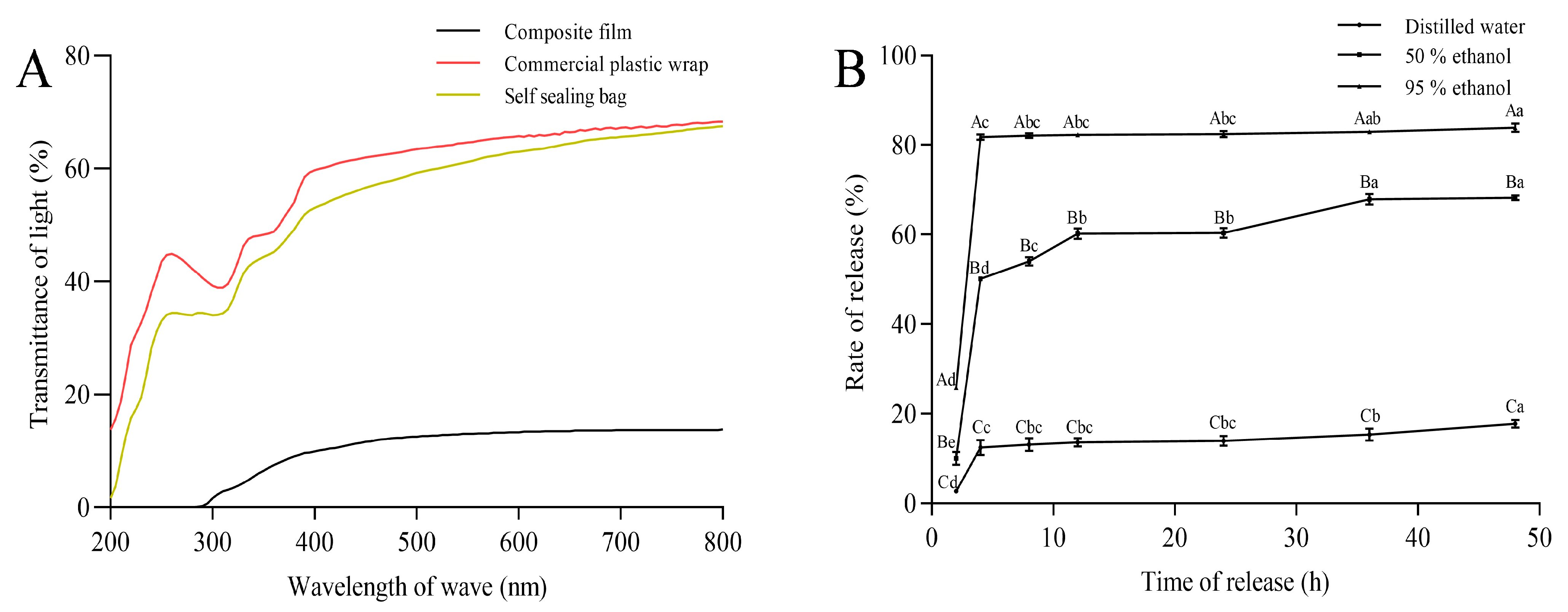 2.5.2. Determination of Barrier Properties of the GA-g-CS Composite Film