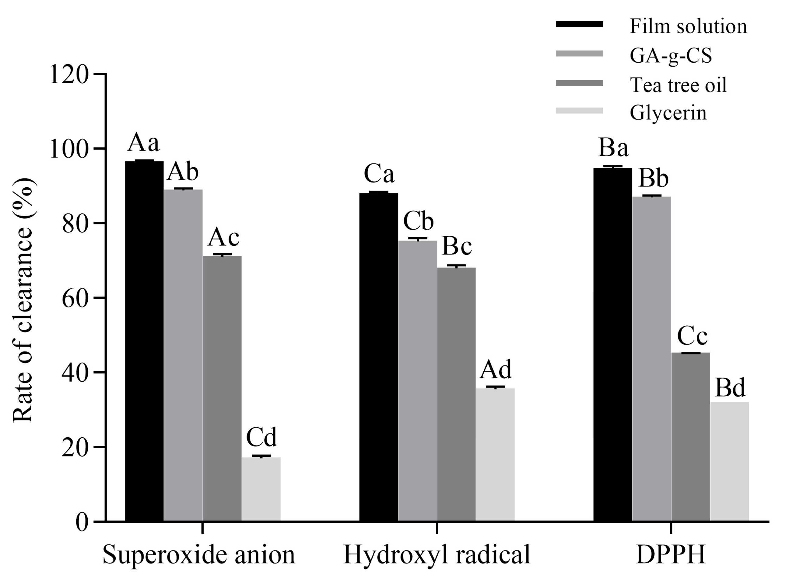 3.2.4. Antioxidant Activity of GA-g-CS Composite Film
