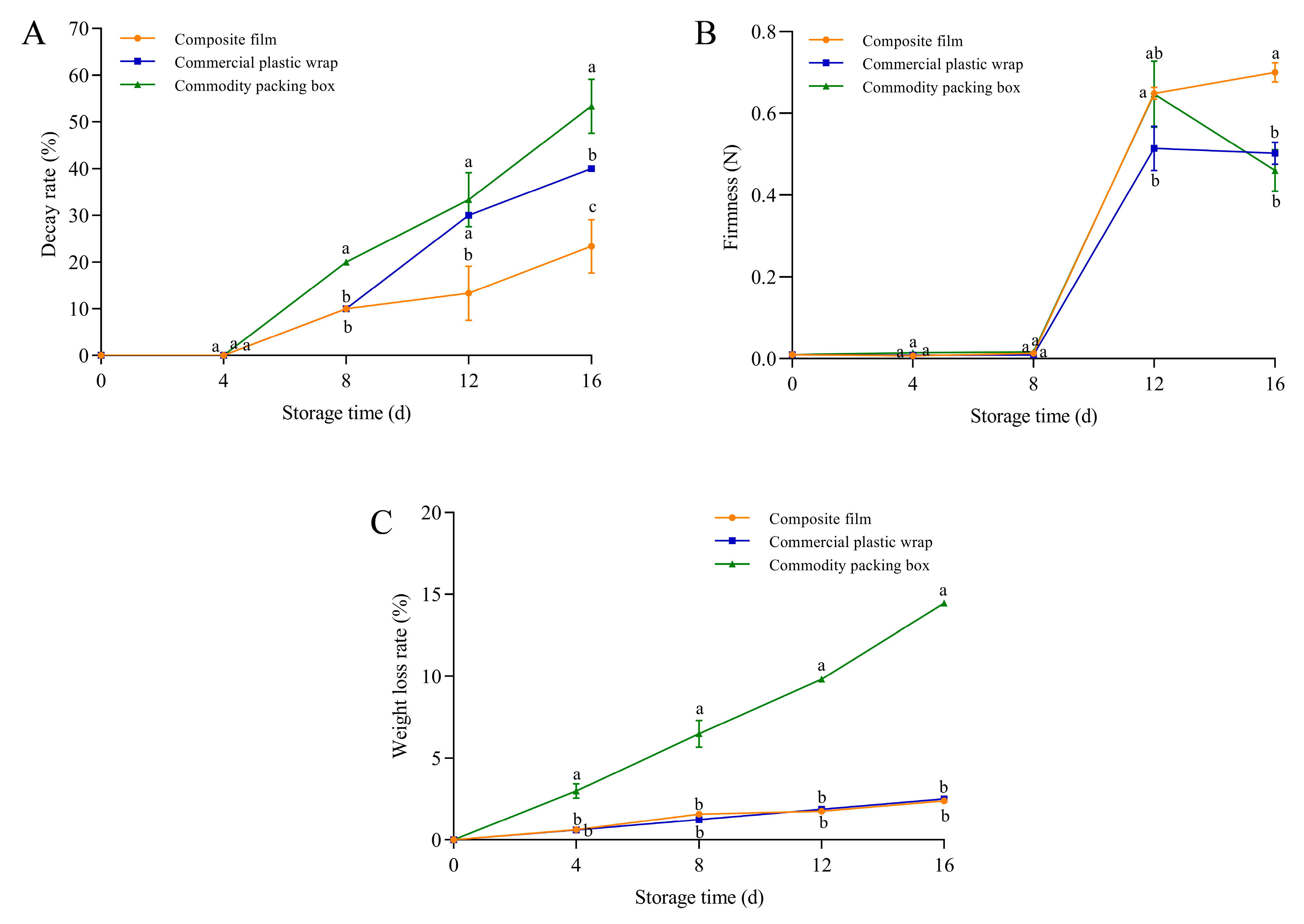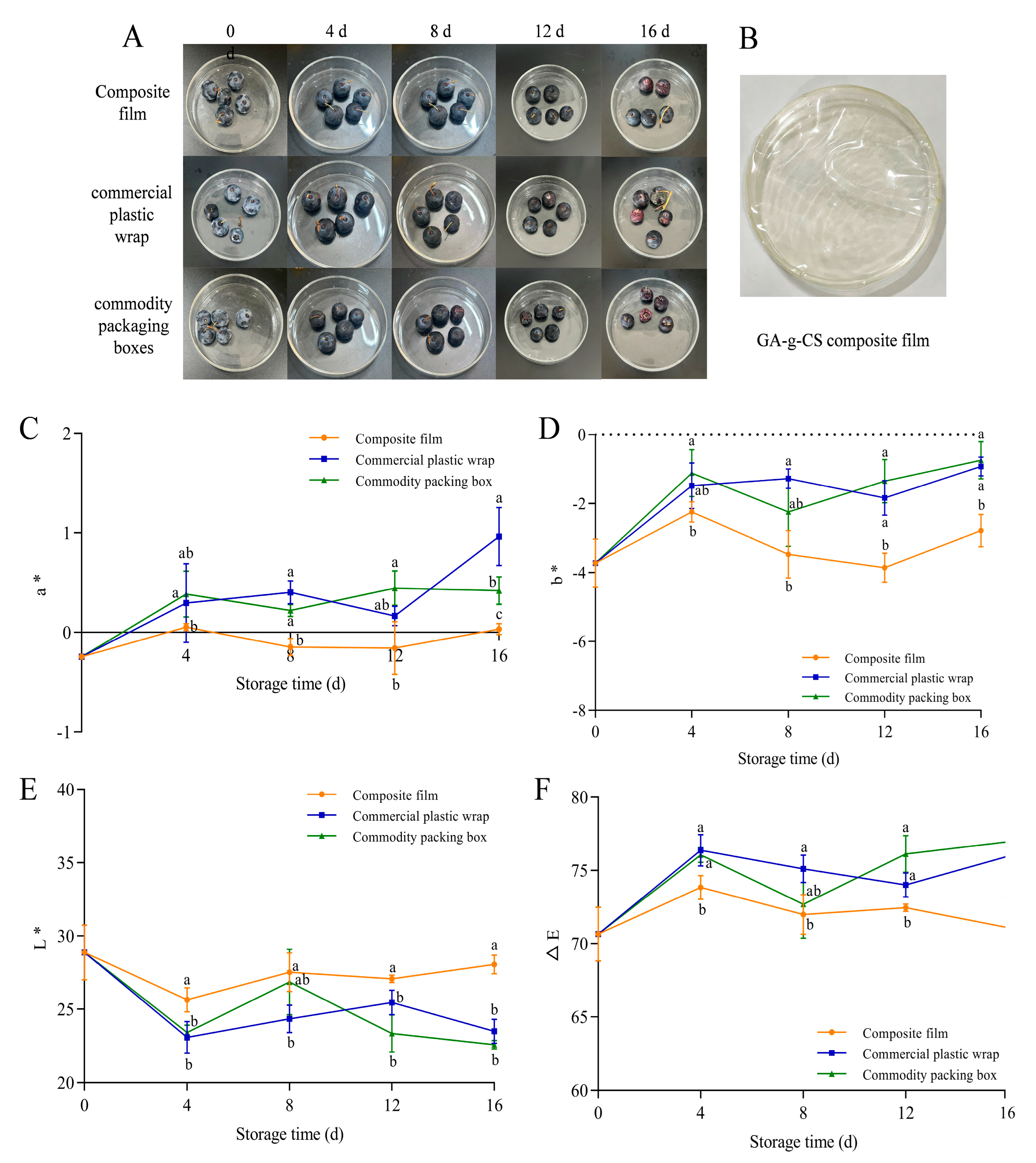 2.6. Preservation of Blueberries by GA-g-CS Composite Film
