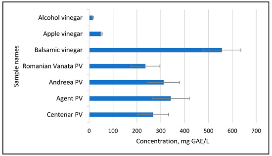 The summarization of total phenolic compounds concentration determined for the vinegar samples after 43 days of fermentation.