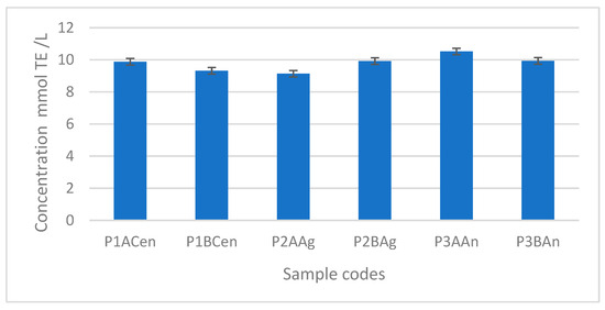 Antioxidant activity of the plum vinegar samples expressed in mmol Trolox equivalent (TE)/L.