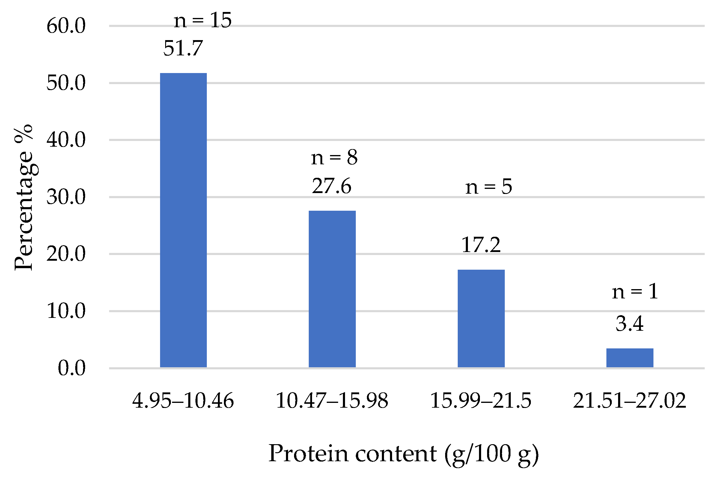 Figure 3. Protein content (g/100 g) of plant-based burgers (number and percentage of products per quartile).