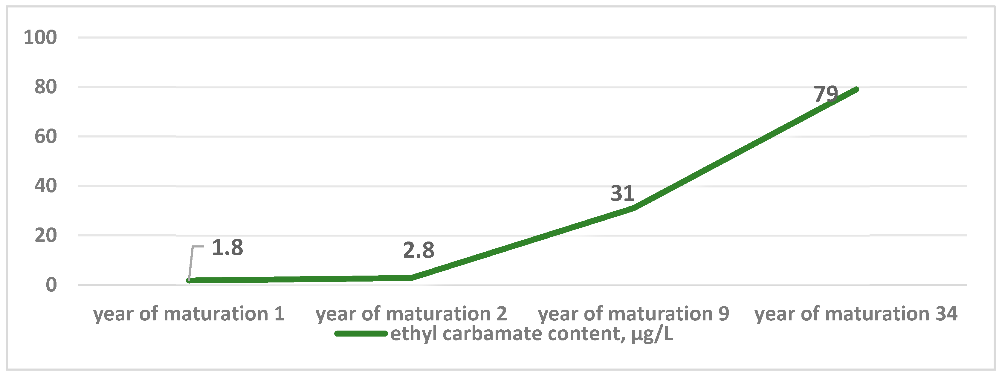 - Ough, C.S.; Crowell, E.A.; Gutlove, B.R. Carbamyl compound reactions with ethanol. Am. J. Enol. Vitic. 1988, 39, 239–242. [Google Scholar] [CrossRef]