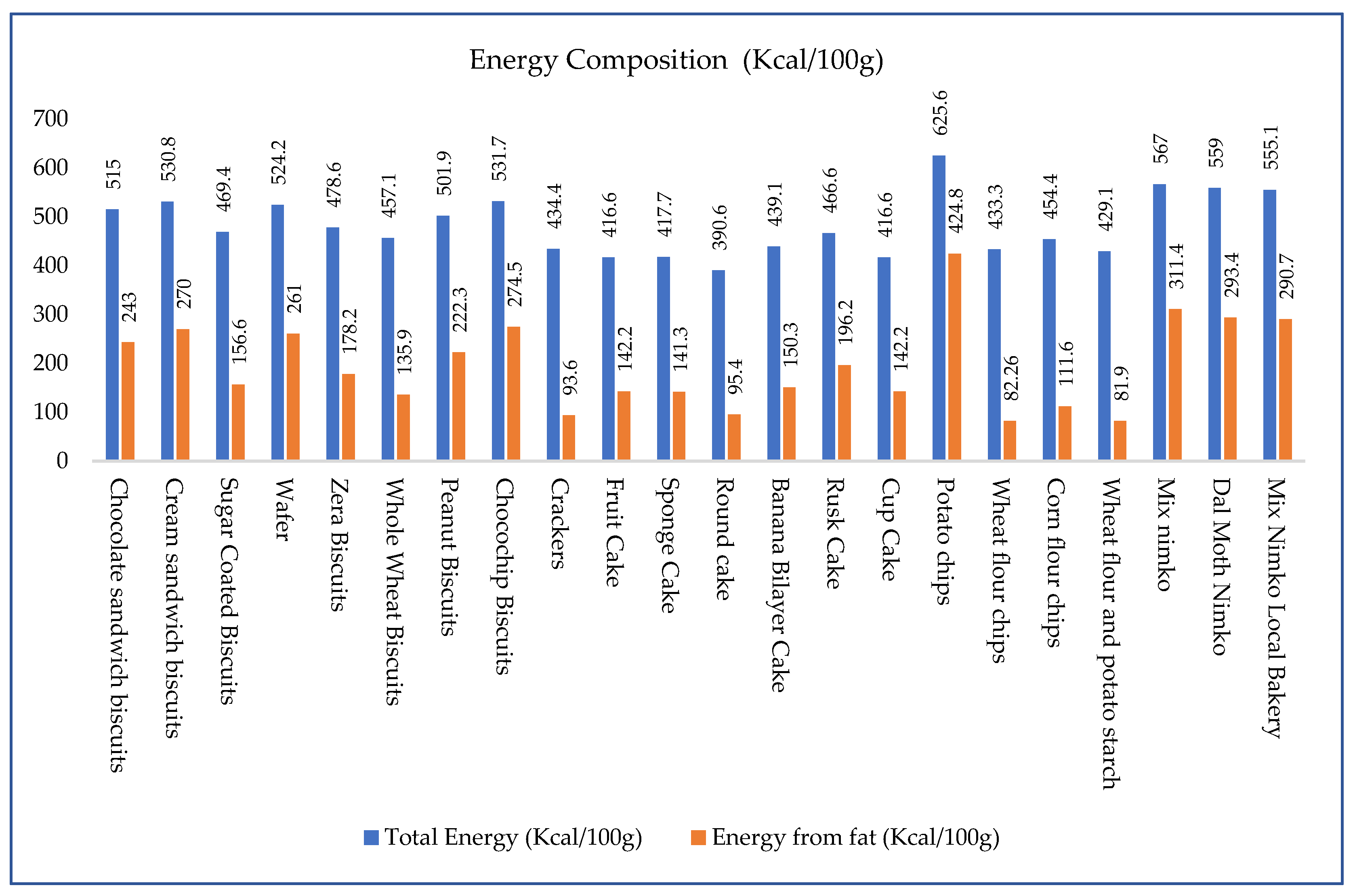 3.1. Energy and Fat Content of High-Fat Snacks: