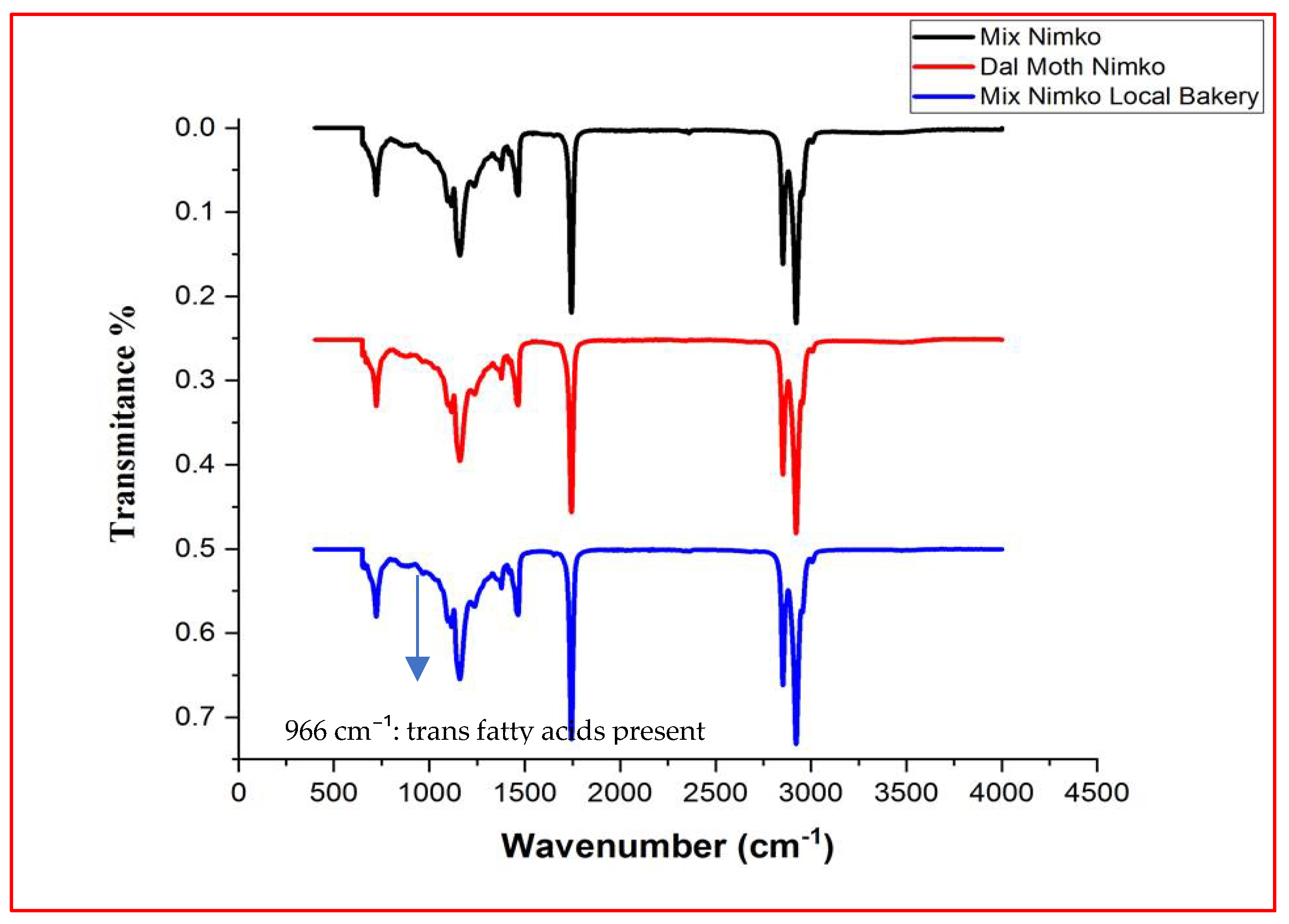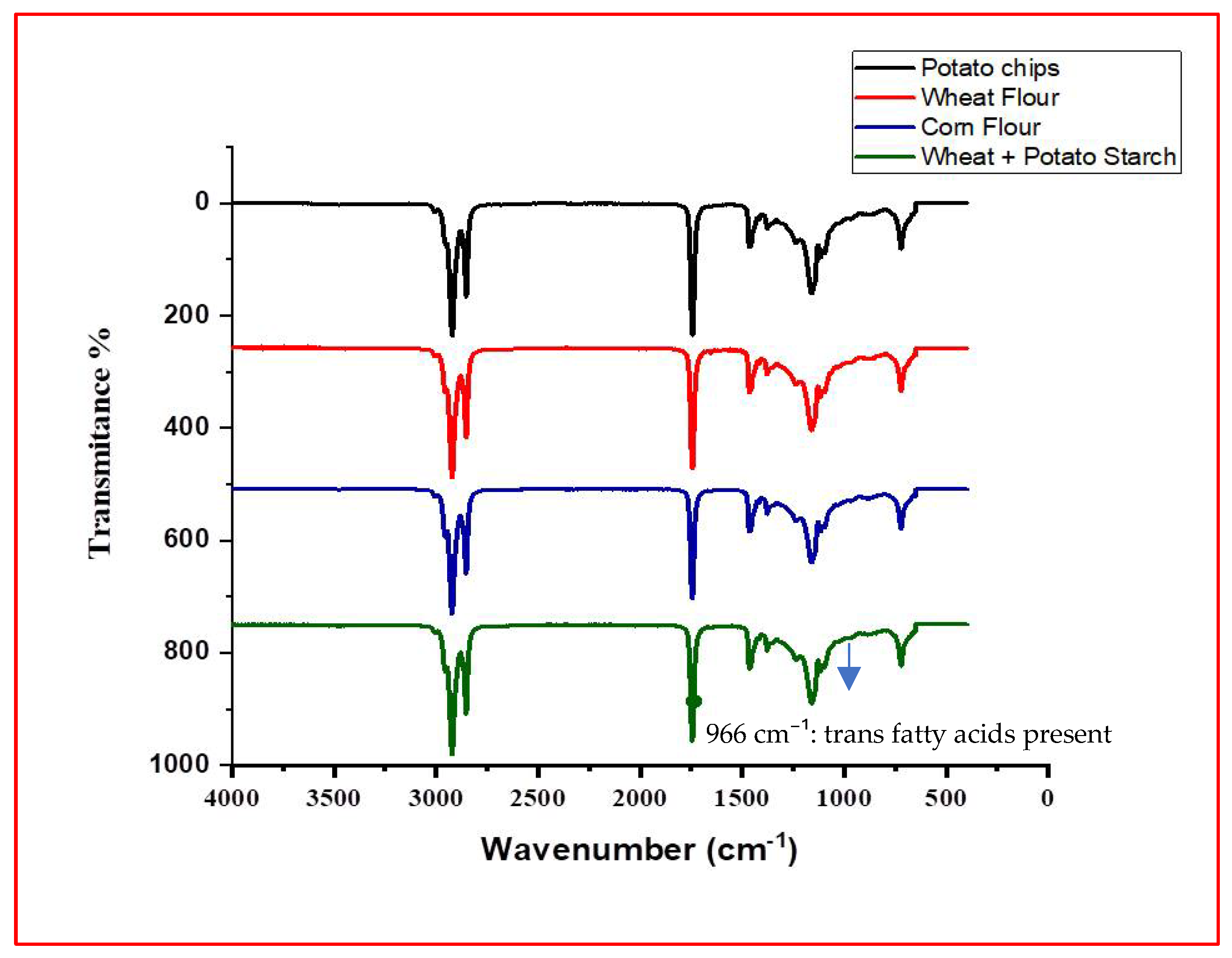 2.6. Trans Fat Analysis by FT-IR Spectroscopy