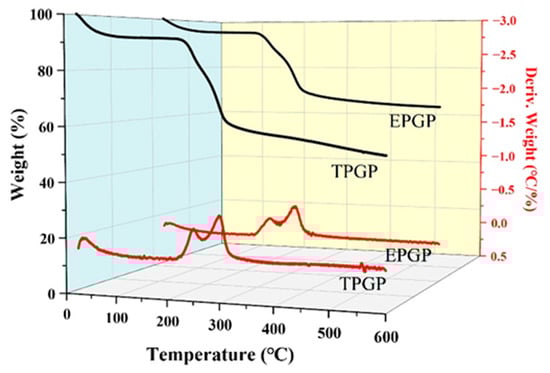 Thermogravimetric Analysis (TGA)/Derivative Thermogravimetric Analysis (DTGA) curves of TPGP and EPGP.