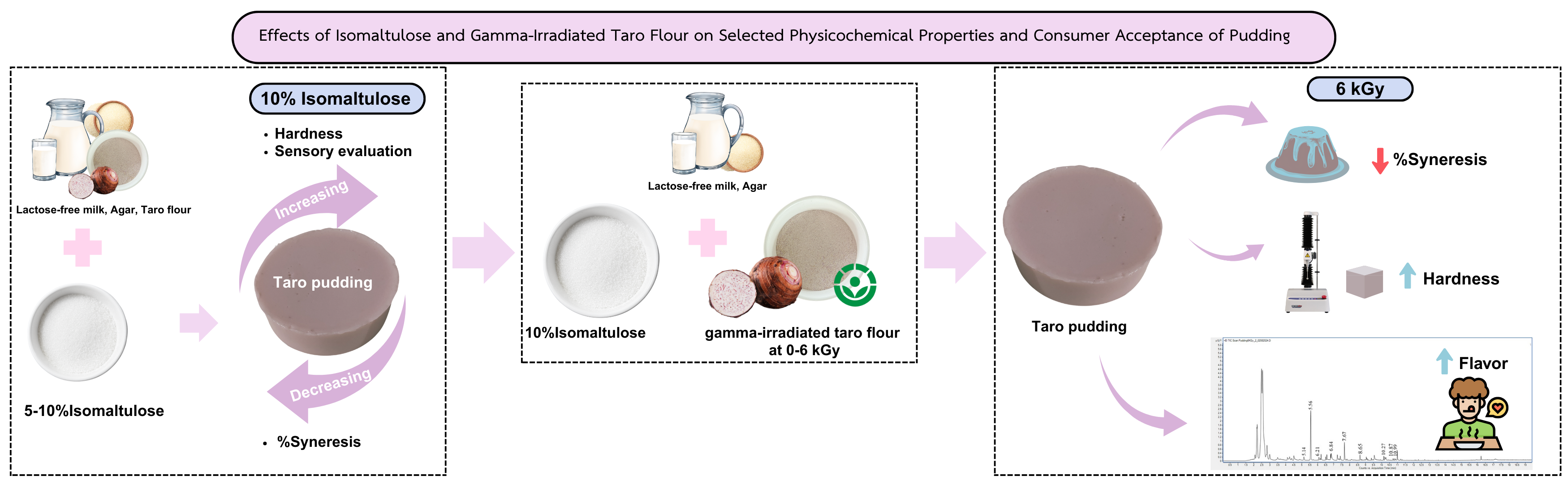 Vatthanakul S, Salamun N, Cheersomsuk T, Chuenchomrat P, Suthipibul P, Sajjabut S, Prinyawiwatkul W. Effects of Isomaltulose and Gamma-Irradiated Taro Flour on Selected Physicochemical Properties and Consumer Acceptance of Pudding. Foods. 2025; 14(19):3350. https://doi.org/10.3390/foods14193350