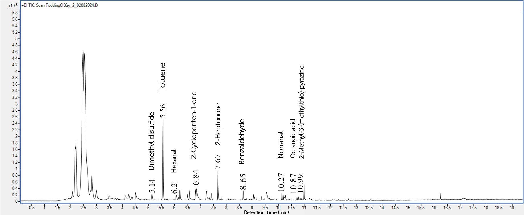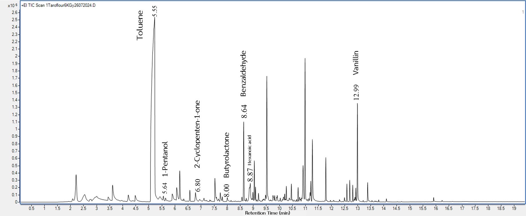 3.3. The Effects of Gamma Irradiation on the Volatile Profile of Taro Flour and Puddings