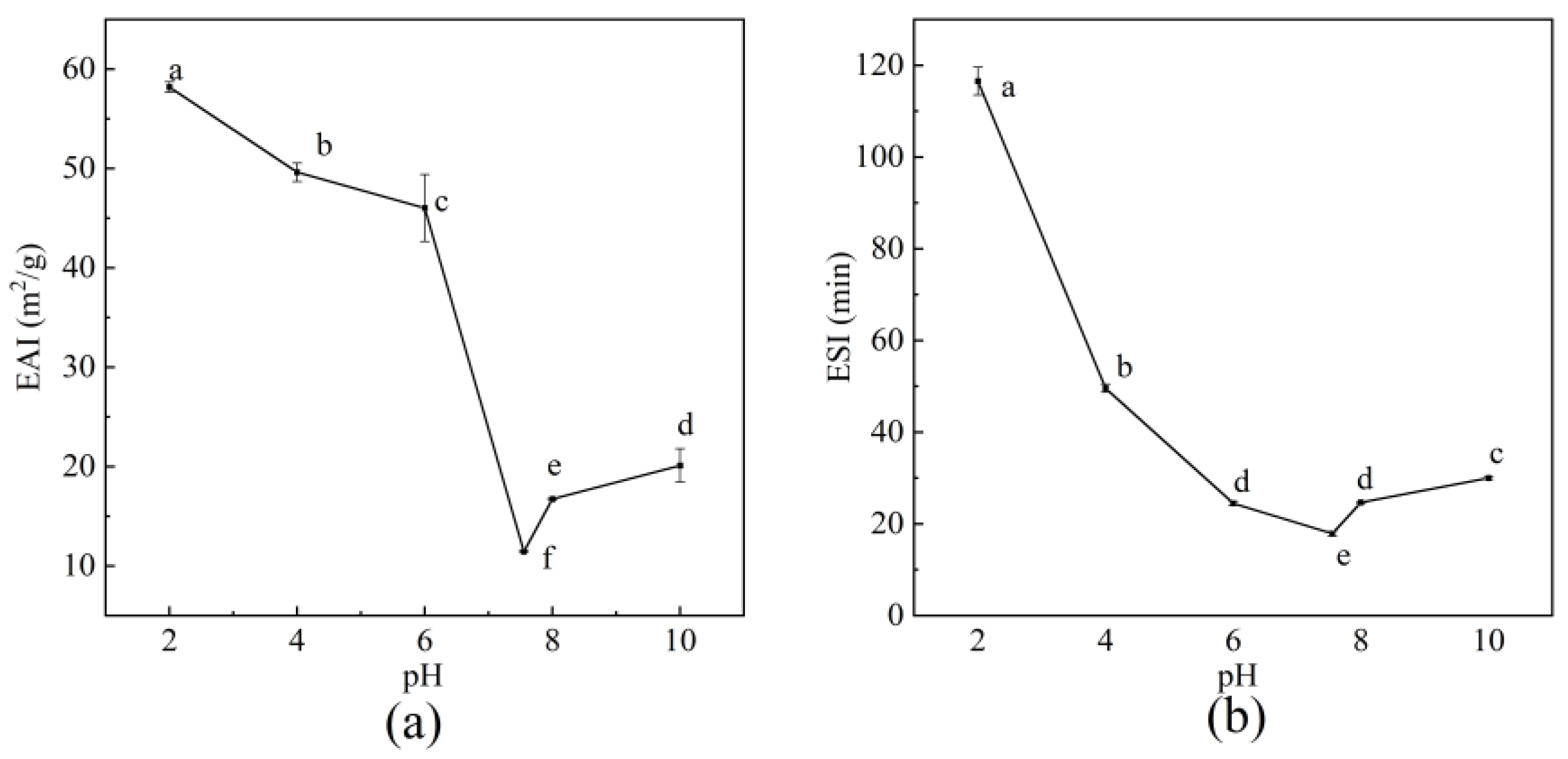 2.7.1. Emulsifying Activity Index (EAI) and Emulsifying Stability Index (ESI)