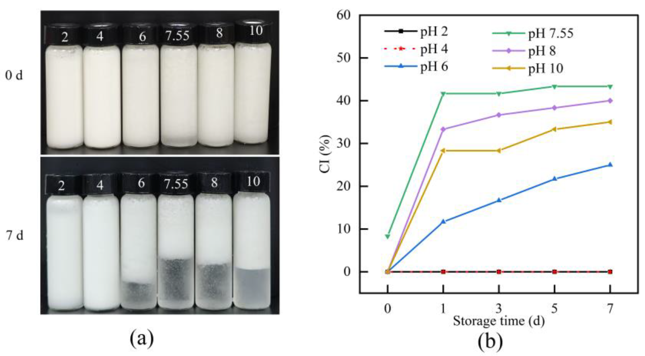 - Ma, H.Z.; Zhang, L.N.; Niu, X.R.; Zhang, Y.N.; Yang, X.Y.; Li, L. Soy protein-gellan gum noncovalent complexes stabilized emulsion: Effect of heating and pH on emulsion stability. Int. J. Biol. Macromol. 2025, 301, 140067. [Google Scholar] [CrossRef]
