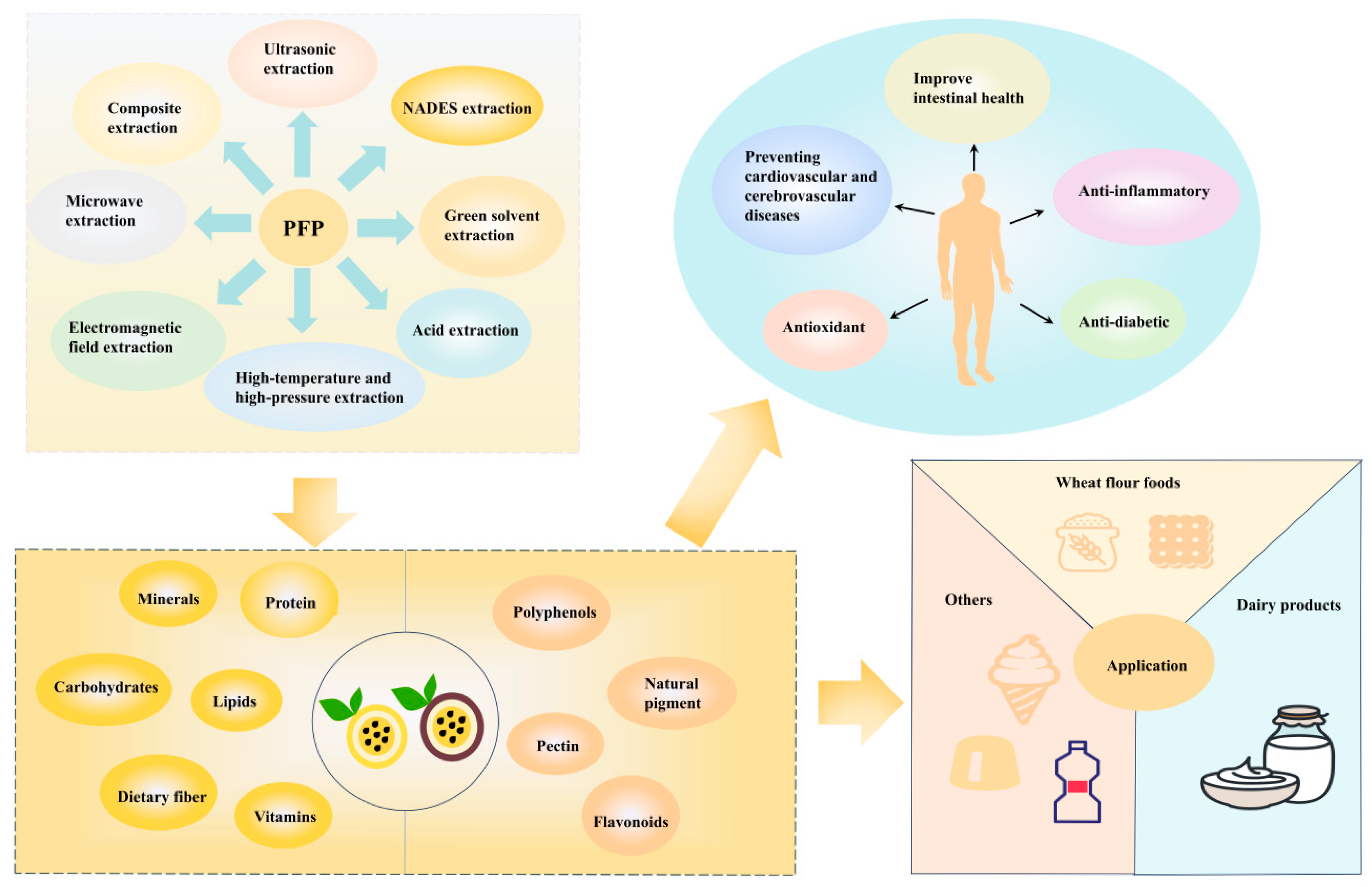 - Liu, Z.; Wang, X.; Li, Q.; Kang, X.; Li, Y.; Gong, C.; Liu, Y.; Chen, H. Physiological functions of the by-products of passion fruit: Processing, characteristics and their applications in food product development. Foods 2025, 14, 1643. [Google Scholar] [CrossRef]