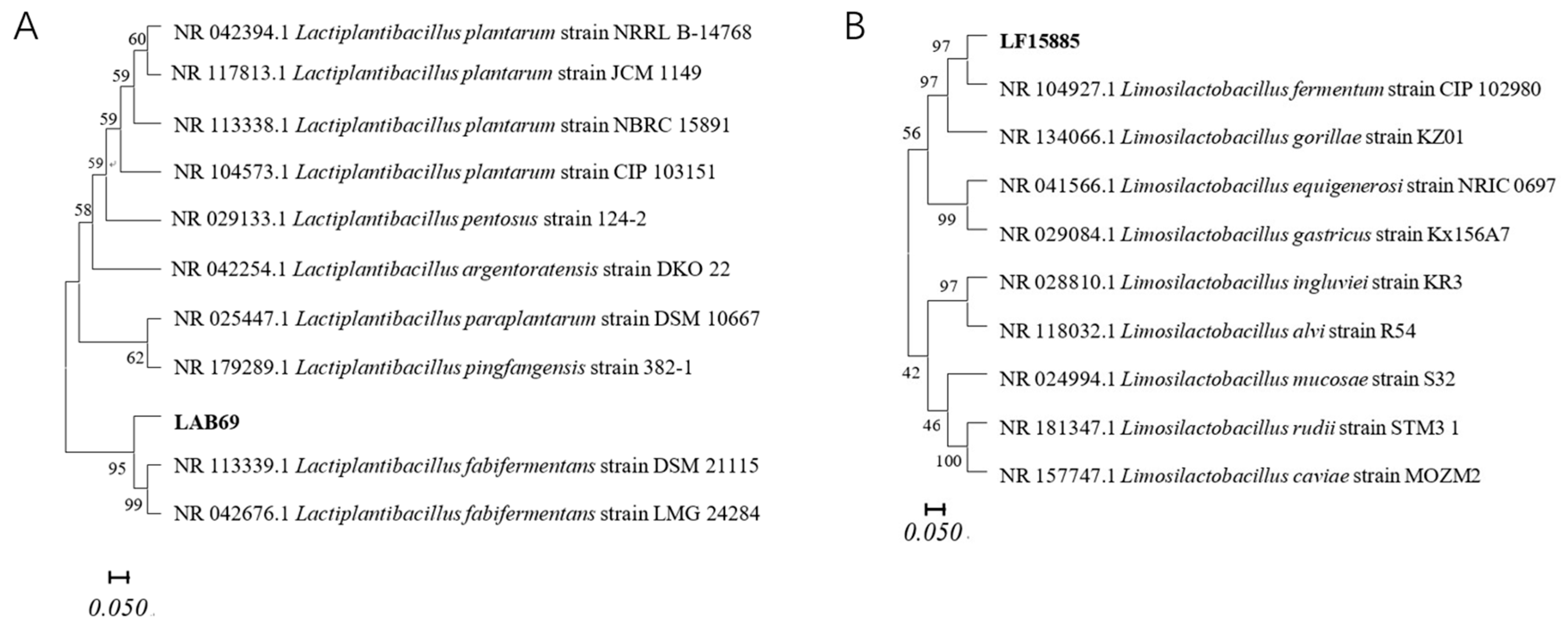 - Buron-Moles, G.; Chailyan, A.; Dolejs, I.; Forster, J.; Miks, M.H. Uncovering carbohydrate metabolism through a genotype-phenotype association study of 56 lactic acid bacteria genomes. Appl. Microbiol. Biotechnol. 2019, 103, 3135–3152. [Google Scholar] [CrossRef]