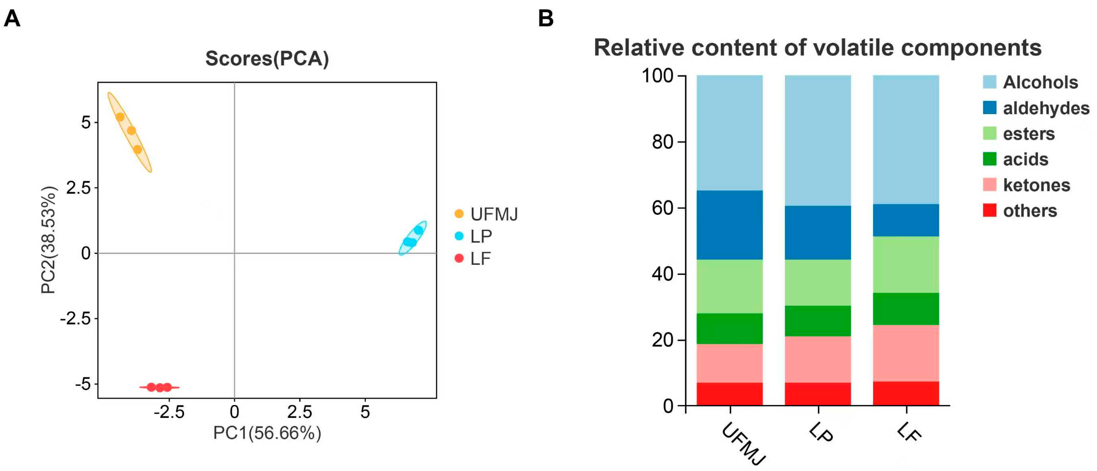 APA StyleLiu, Y., Liu, Q., Wang, J., Huang, X., Wang, Y., Qiao, M., Ma, Y., & Hai, D. (2025). Metabolic Remodeling and Flavor Enhancement of Mulberry Juice Through Lactic Acid Bacteria Fermentation: A GC-IMS and Untargeted Metabolomics Approach. Foods, 14(19), 3398. https://doi.org/10.3390/foods14193398