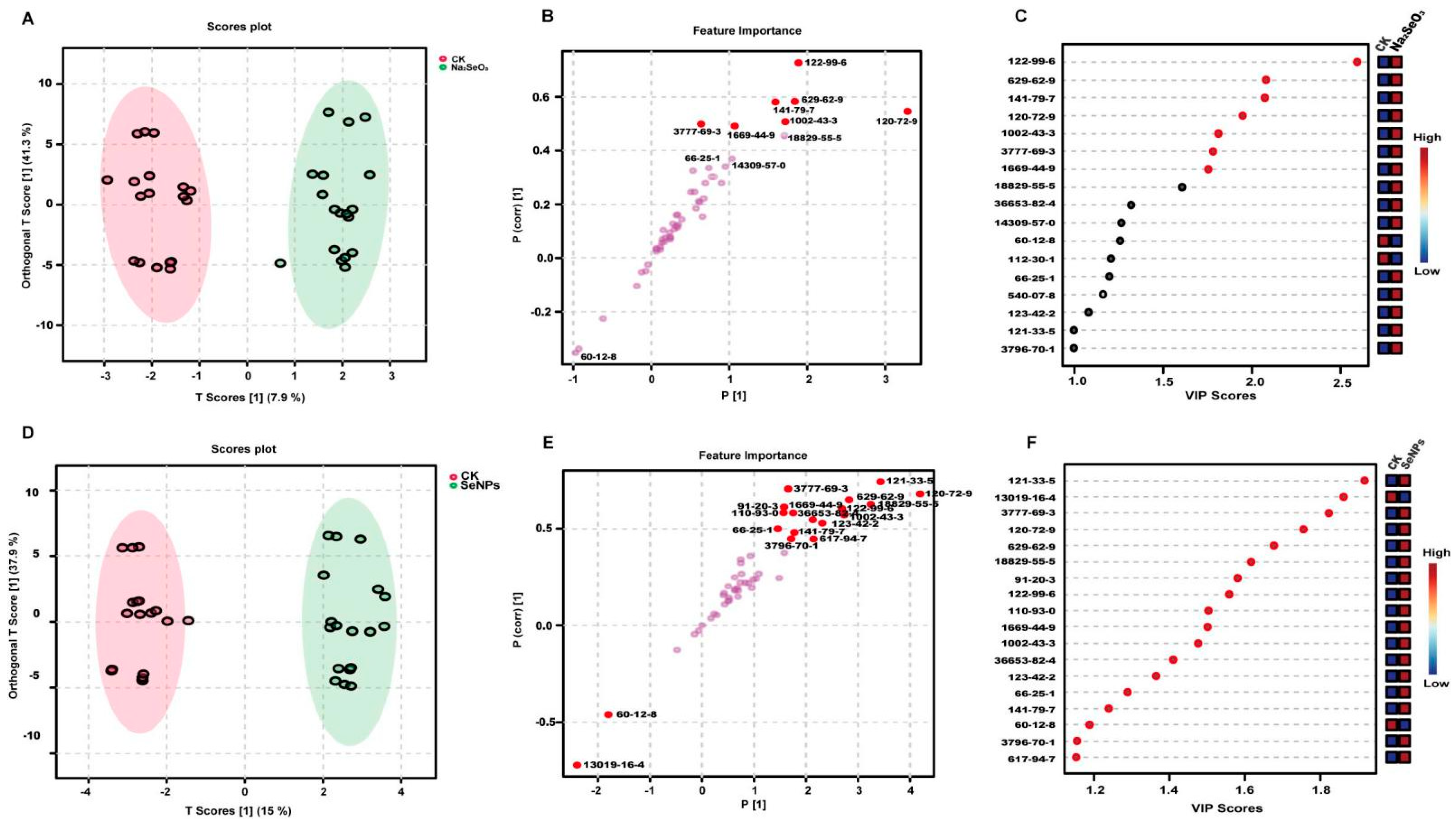 - Zhou, C.; Zhang, J.; Wu, Y.; Cheng, H.; Pang, Q.; Xiao, Y.; Li, D.; Pan, C. Metabolomic Analysis on the Mechanism of Nanoselenium Biofortification Improving the Siraitia grosvenorii Nutritional and Health Value. Foods 2022, 11, 3019. [Google Scholar] [CrossRef]