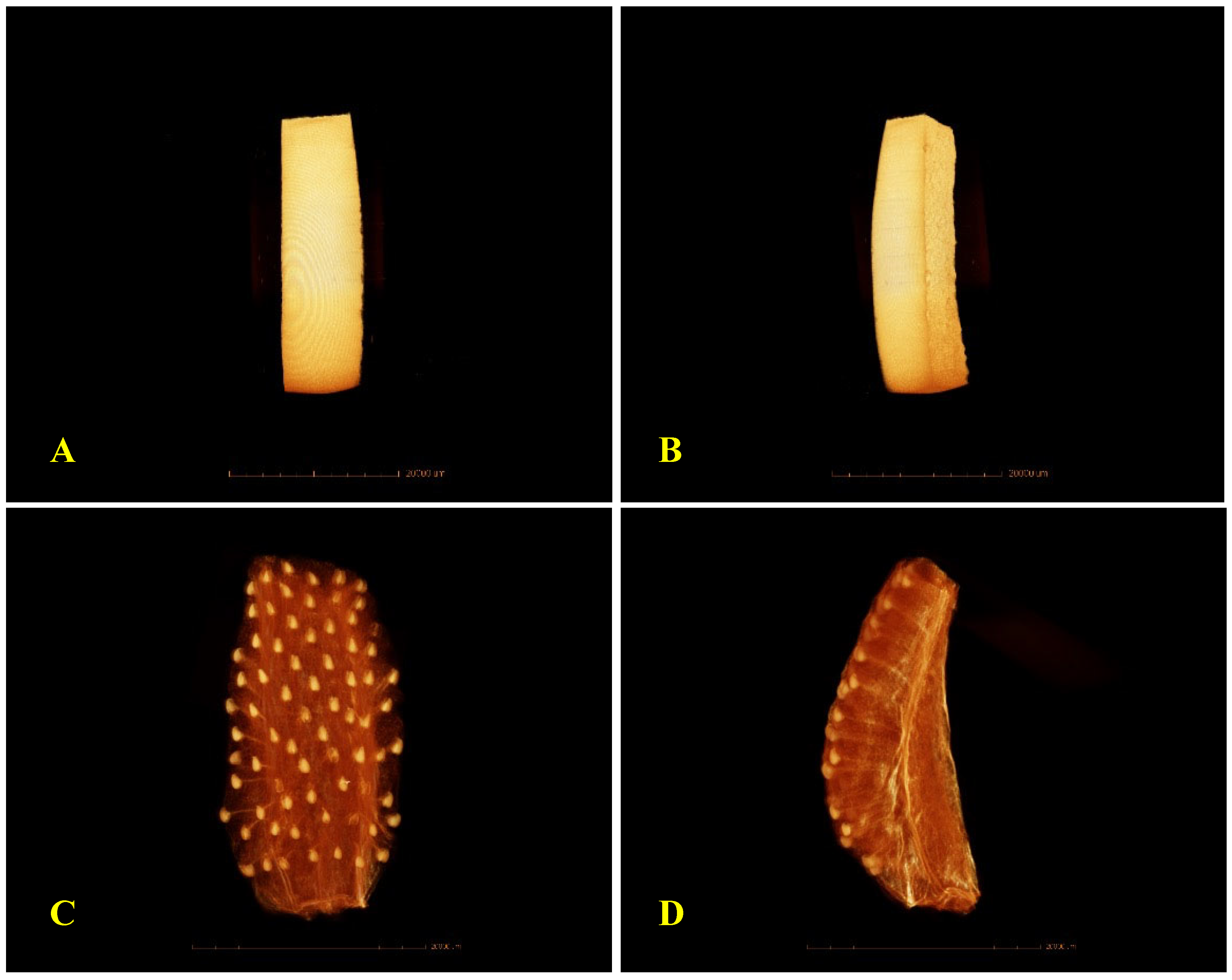 2.6. Microstructural Characterization of Fresh and Decayed Tissues