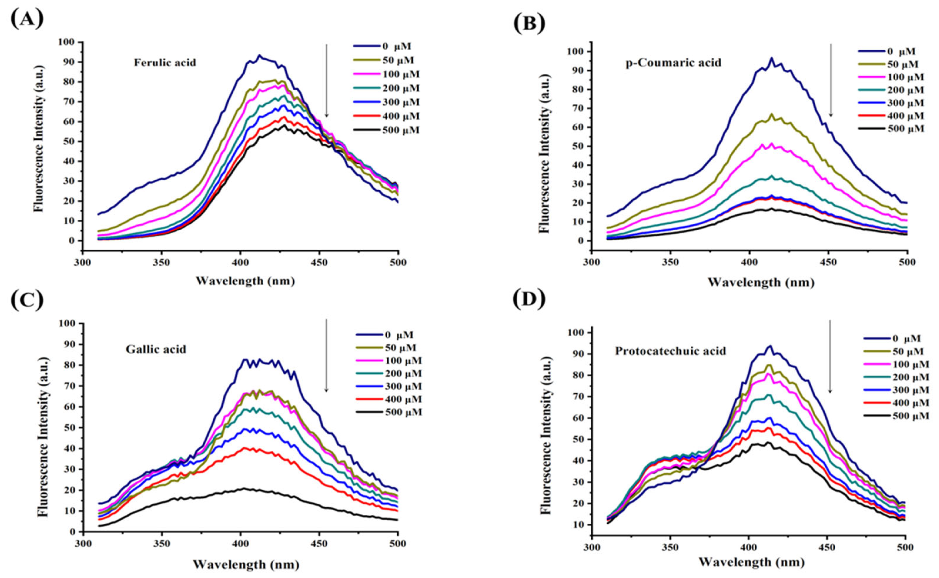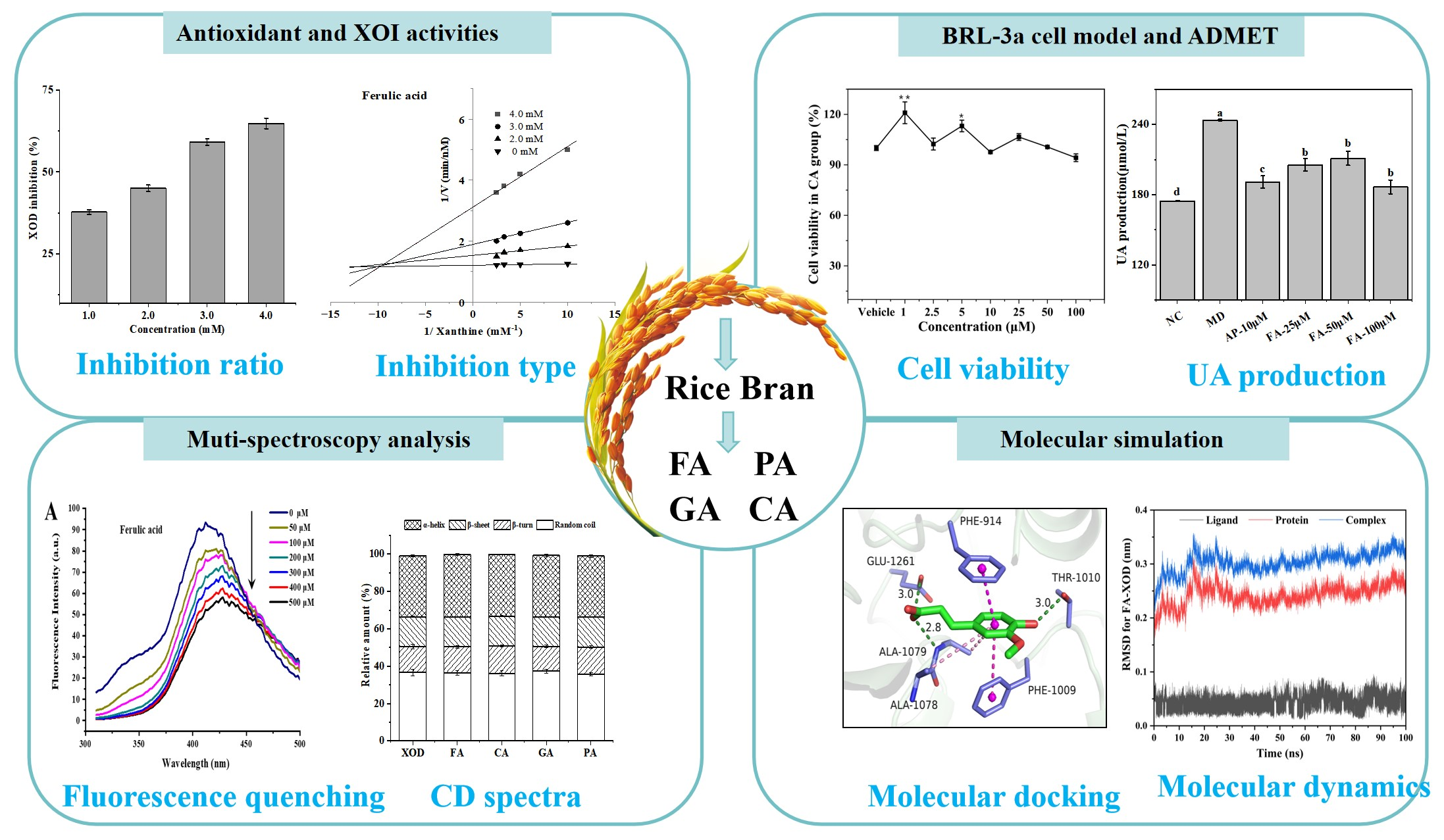 Wang X, Su D, Luo X, Chen B, Bhullar KS, Liu H, Wang C, Zhang J, Wang L, Yang H, et al. Inhibition of Xanthine Oxidase by Four Phenolic Acids: Kinetic, Spectroscopic, Molecular Simulation, and Cellular Insights. Foods. 2025; 14(19):3404. https://doi.org/10.3390/foods14193404