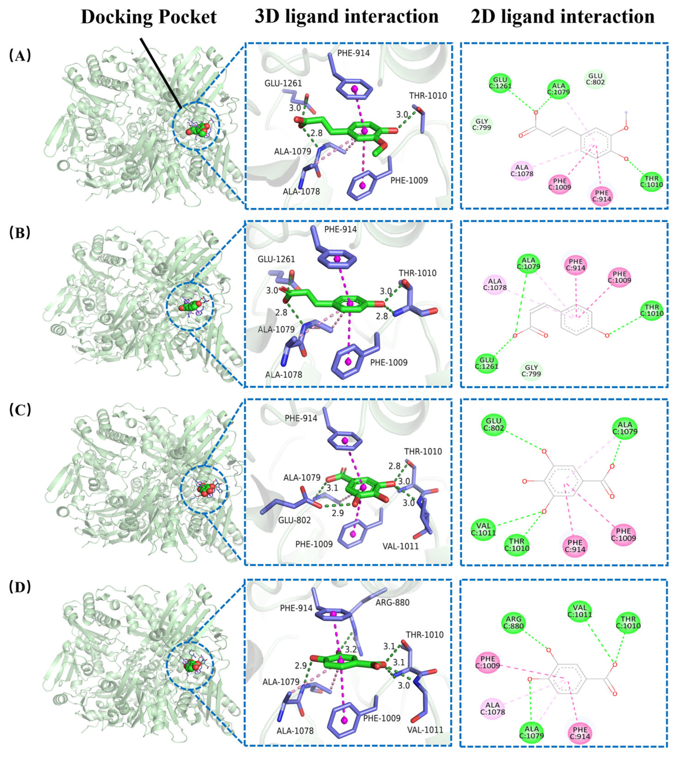 3.9. Physicochemical and ADMET Performance Prediction Structure-Activity Relationship of XOD Inhibition by Phenolic Acids
