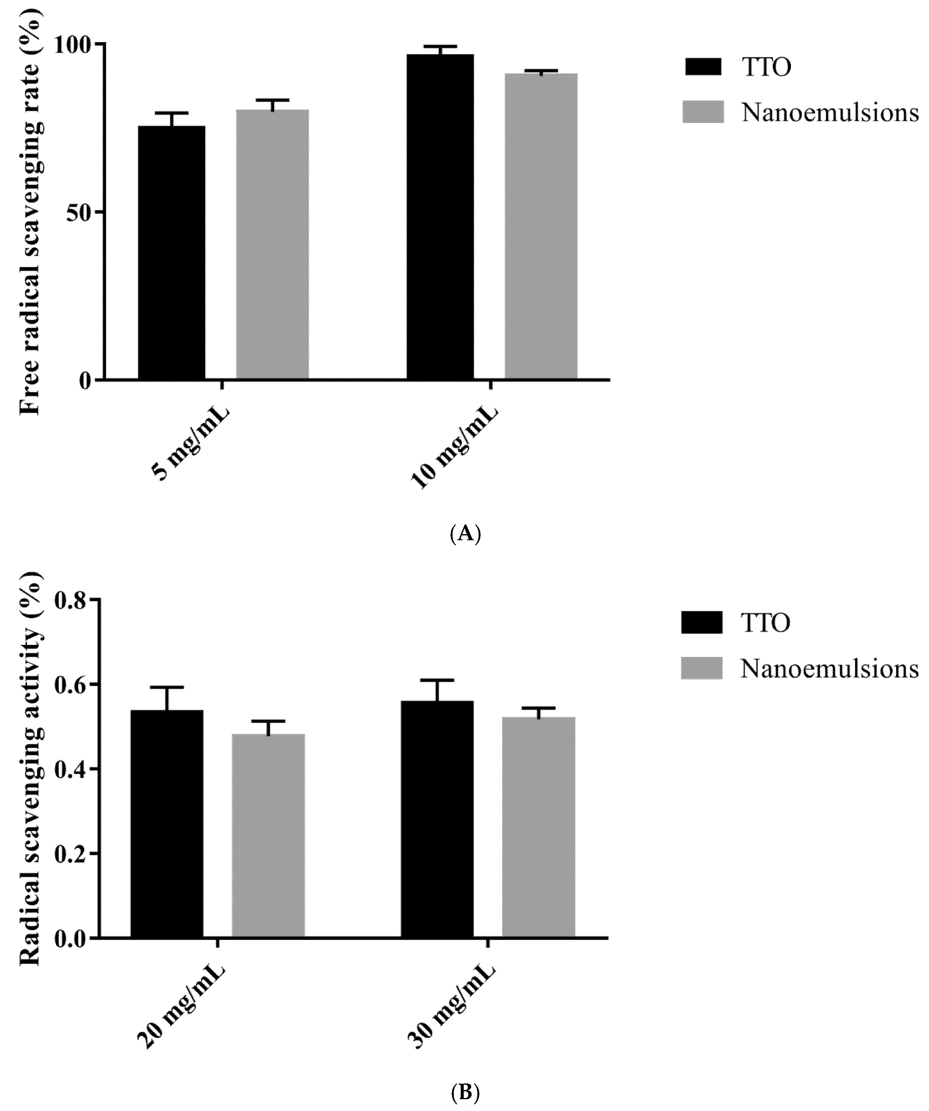 3.5. Antioxidant Activity of the TTO Nanoemulsions