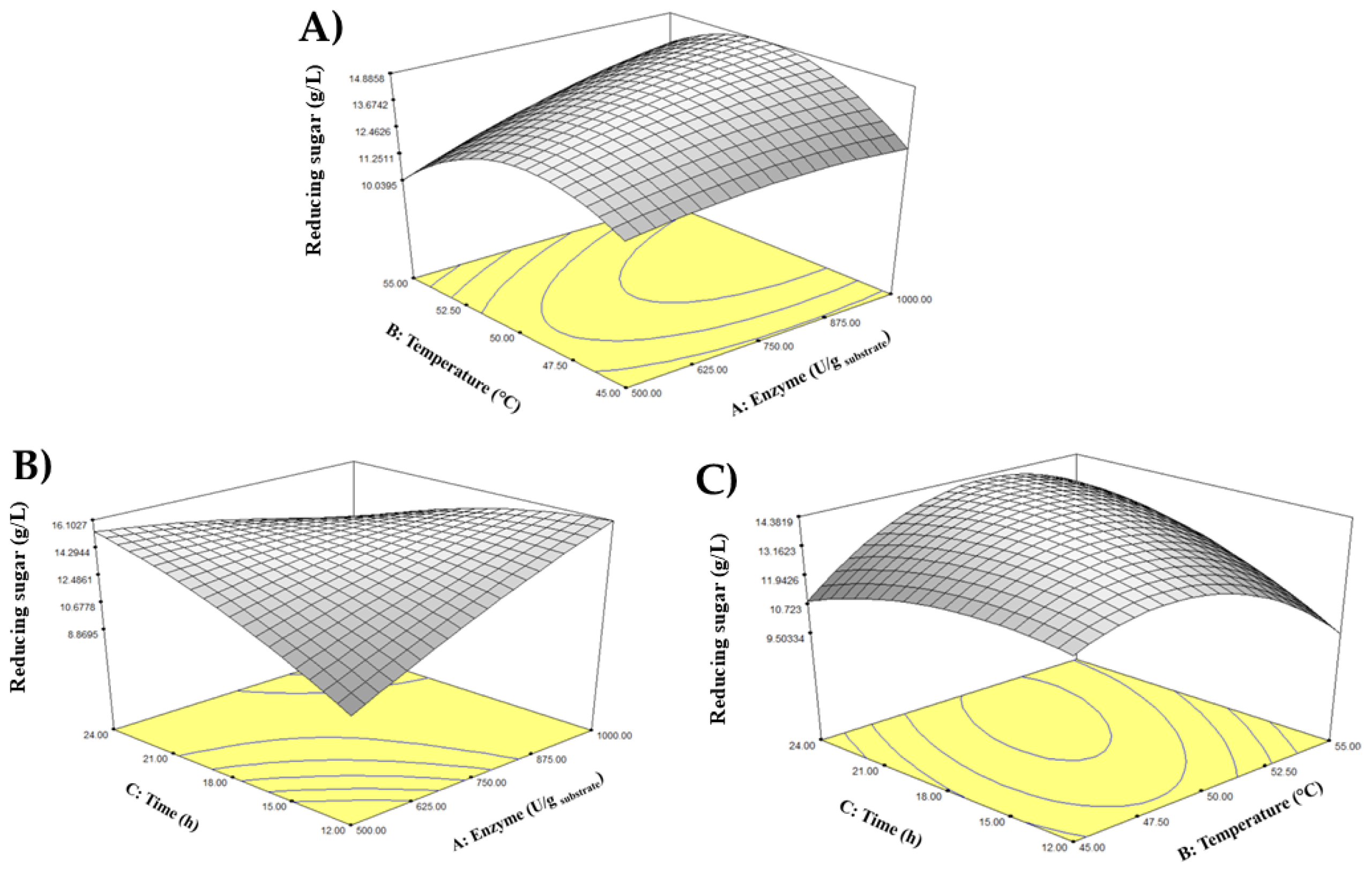 - Akkarachaneeyakorn, S.; Suwakrai, A.; Pewngam, D. Optimization of reducing sugar production from enzymatic hydrolysis of banana peels using response surface methodology. Songklanakarin J. Sci. Technol. 2018, 40, 1. [Google Scholar] [CrossRef]