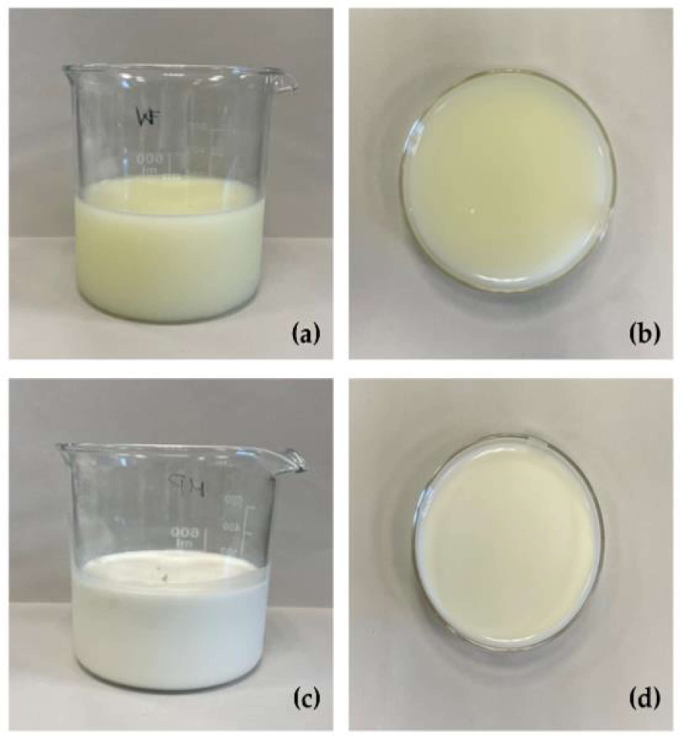 - Pisponen, A.; Mootse, H.; Poikalainen, V.; Kaart, T.; Maran, U.; Karus, A. Effects of temperature and concentration on particle size in a lactose solution using dynamic light scattering analysis. Int. Dairy J. 2016, 61, 205–210. [Google Scholar] [CrossRef]