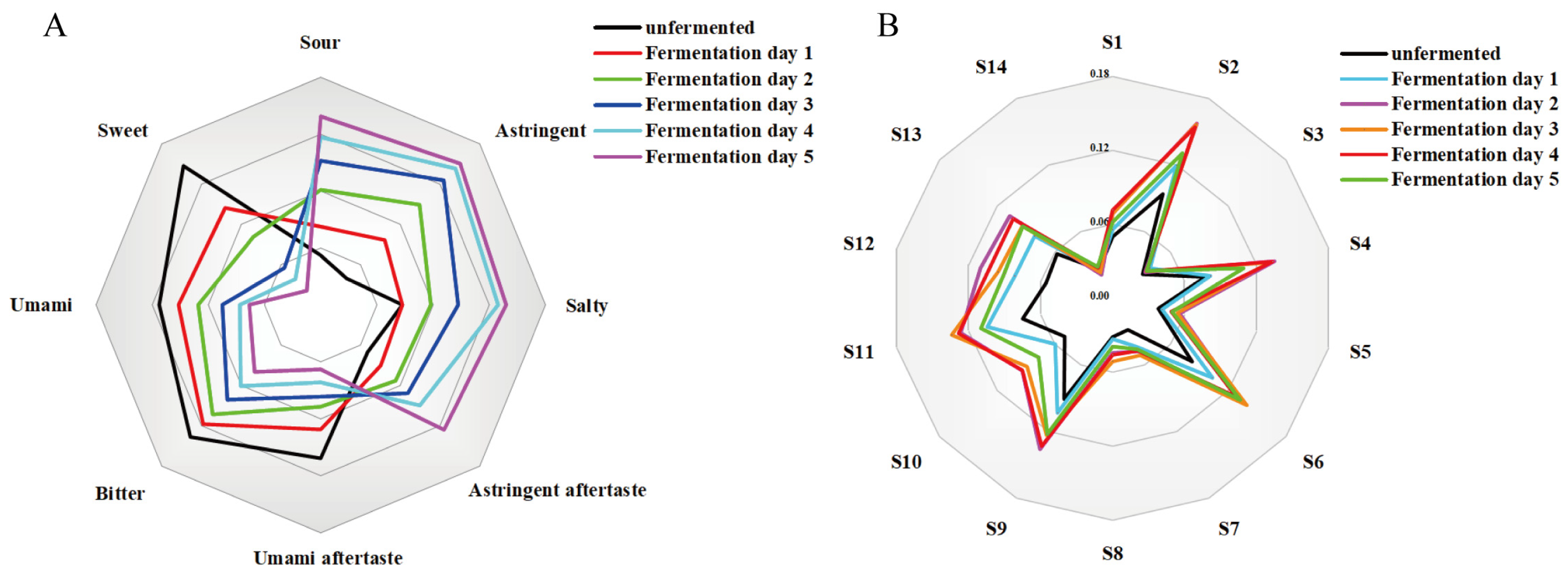 2.4. Flavor Profiling of PL Fermentation via Intelligent Sensory Technology
