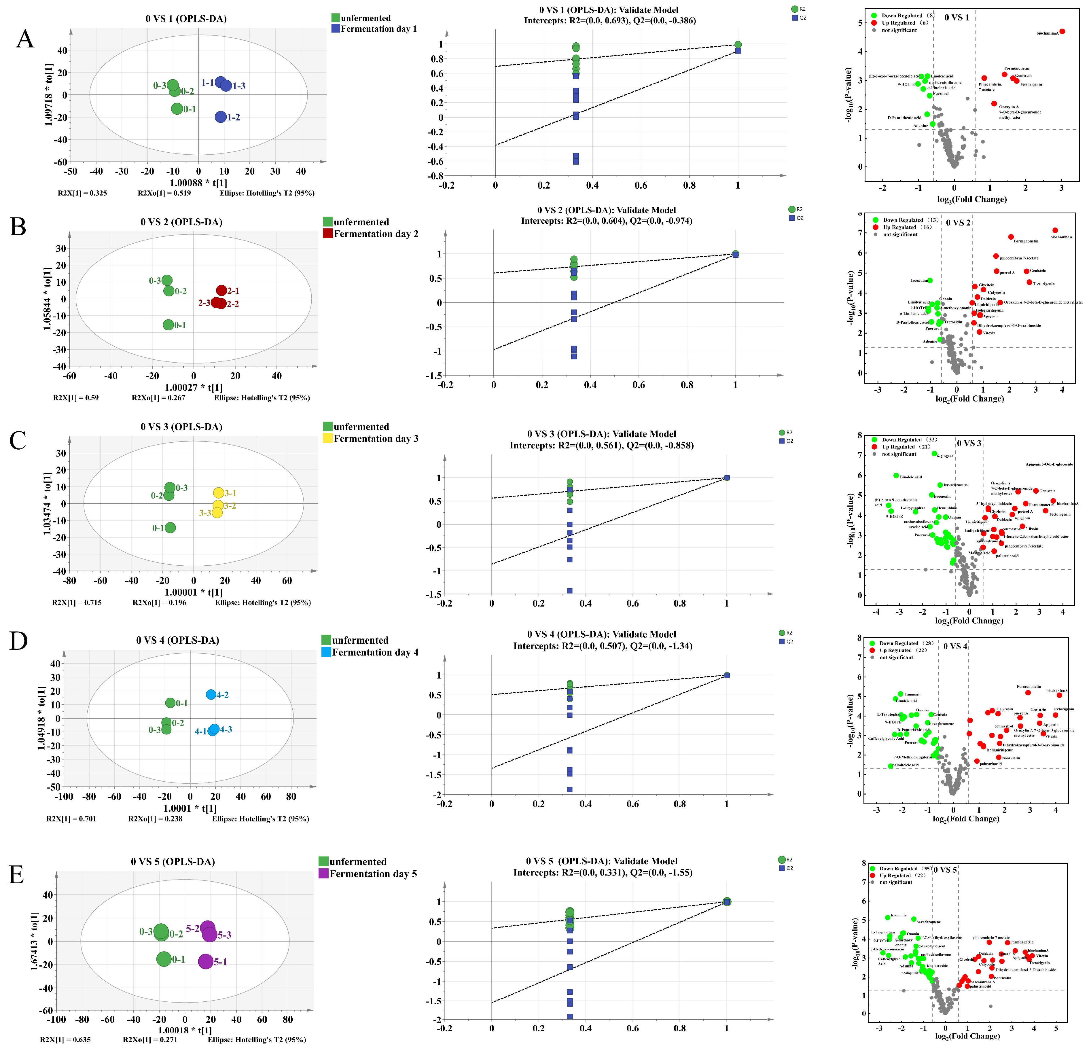 - Yang, J.; Shi, H.; Cai, L.; Zhang, S.; Zhao, Y.; Su, X.; Sun, H.; Cao, Y.; Li, Y. Effects of different lactic acid bacteria fermentation on active substances and functional characteristics of honeysuckle liquid: Analysis of metabolites of honeysuckle liquid based on metabolomics. Front Microbiol. 2025, 16, 1595351. [Google Scholar] [CrossRef]