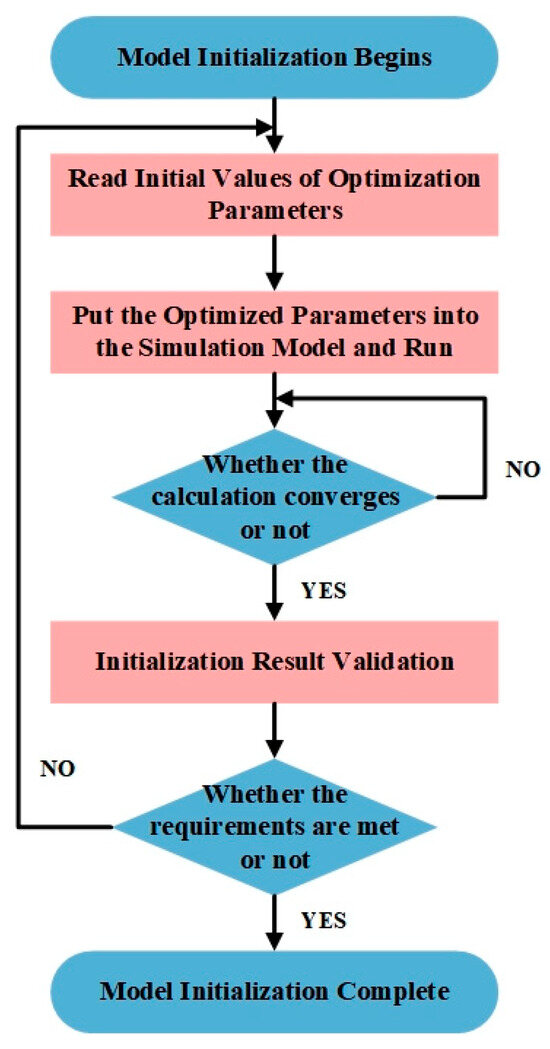 During the model initialization phase, the temperature field parameters were initially determined using an optimization algorithm, as depicted in Figure 4. These parameters were then integrated into a Mechanism and Data-Driven Multi-field Coupling Mathematical Models for iterative computation. The model’s convergence was evaluated based on a predefined criterion: if the computational results did not meet the convergence threshold, the parameters were adjusted, and the iterations continued until successful convergence was achieved. Following convergence, the initialization results underwent a comprehensive multidimensional validation. To ensure accuracy, three key characteristics of temperature distribution contour maps were utilized as validation metrics: (1) the number of low-temperature zones, (2) the spatial distribution area of these zones, and (3) the average temperature variation trend.