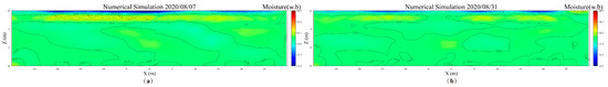 The moisture contour maps of the grain pile’s XOZ plane. (a) 7th day; (b) 31st day.