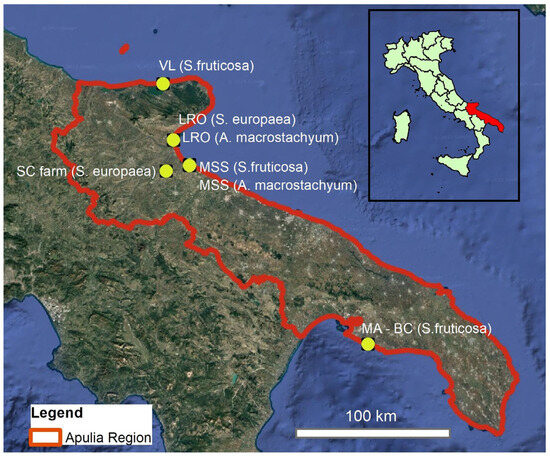 Glasswort samples were collected in Apulian coastal areas (the geographical coordinates are in the WGS84 system):