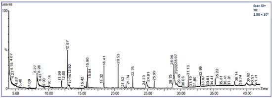 GC−MS chromatogram of methanolic papaya leaf extract.