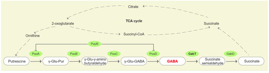 - Feehily, C.; O’Byrne, C.P.; Karatzas, K.A.G. Functional γ-Aminobutyrate Shunt in Listeria monocytogenes: Role in Acid Tolerance and Succinate Biosynthesis. Appl. Environ. Microbiol. 2013, 79, 74–80. [Google Scholar] [CrossRef]