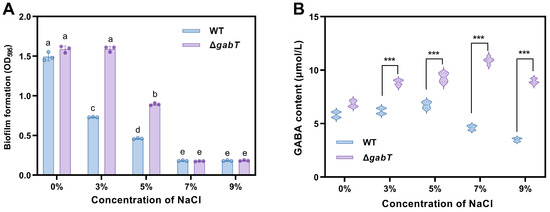 3.6. Effects of Osmotic Stress on Biofilm Formation and GABA Content