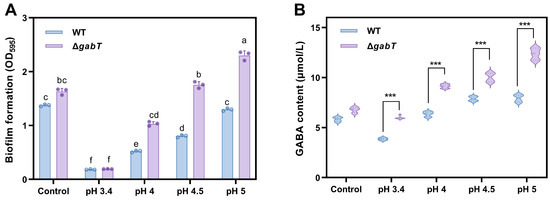 Wu, J.; Yu, Y.; Liu, F.; Cao, Y.; Ren, J.; Fan, Y.; Xiao, X. γ-Aminobutyric Acid (GABA) Metabolic Bypass Plays a Crucial Role in Stress Tolerance and Biofilm Formation in C. sakazakii ATCC 29544. Foods 2025, 14, 171. https://doi.org/10.3390/foods14020171