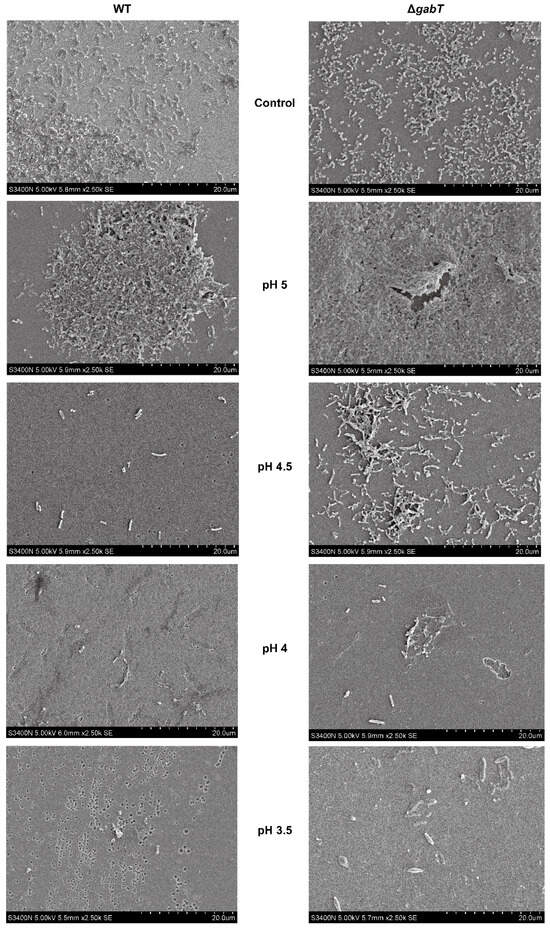 3.9. Effects of Acid Stress on the Biofilm Microstructure