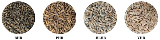 - Ge, X.; Jing, L.; Zhao, K.; Su, C.; Zhang, B.; Zhang, Q.; Han, L.; Yu, X.; Li, W. The phenolic compounds profile, quantitative analysis and antioxidant activity of four naked barley grains with different color. Food Chem. 2021, 335, 127655. [Google Scholar] [CrossRef] [PubMed]