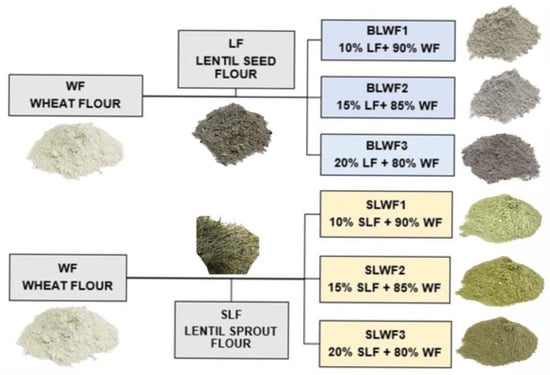 26]. It should also be noted that flour composed of different proportions of black lentils was richer in protein than flour containing the latter’s sprouts.