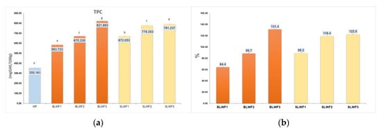 Table 2 presents the profile of individual polyphenols identified in the BLWF and SLWF mixtures.