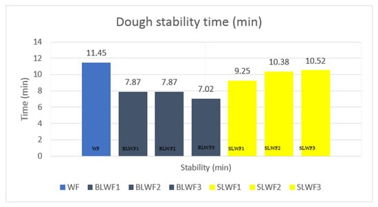 Figure 10 shows the stability time obtained for each of the doughs produced from different flours.