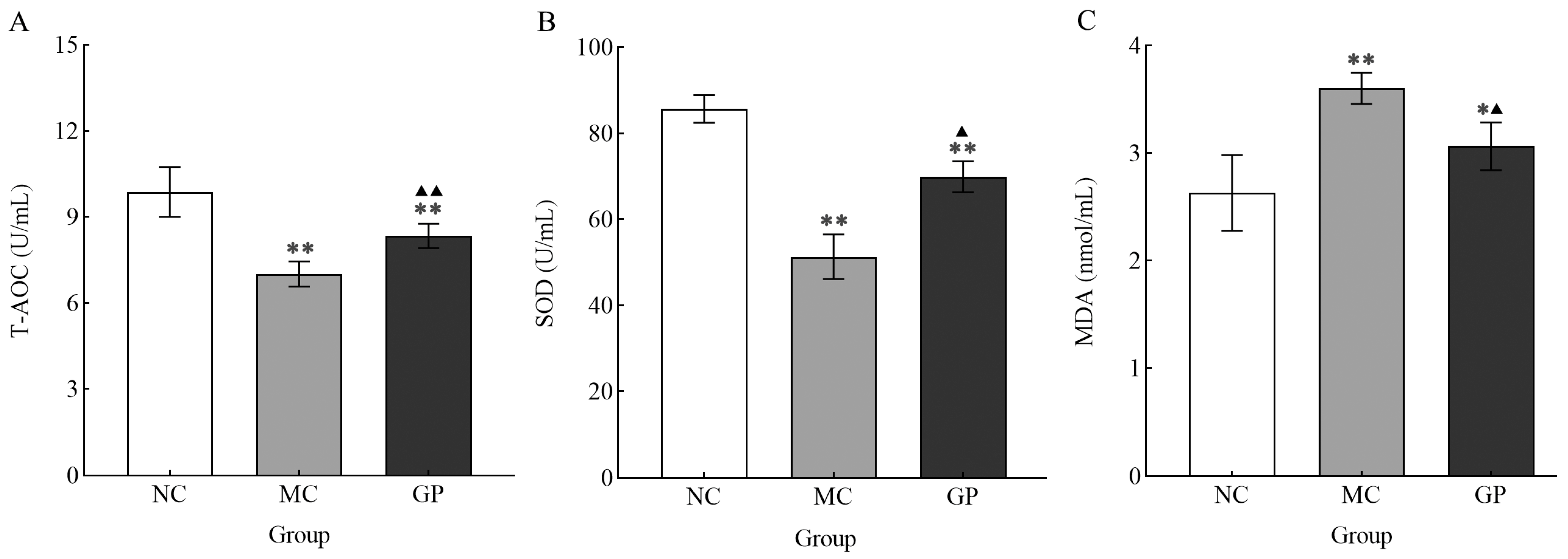 3.3. The Effects of GP on the Serum Levels of Oxidative Stress Biomarkers in Mice