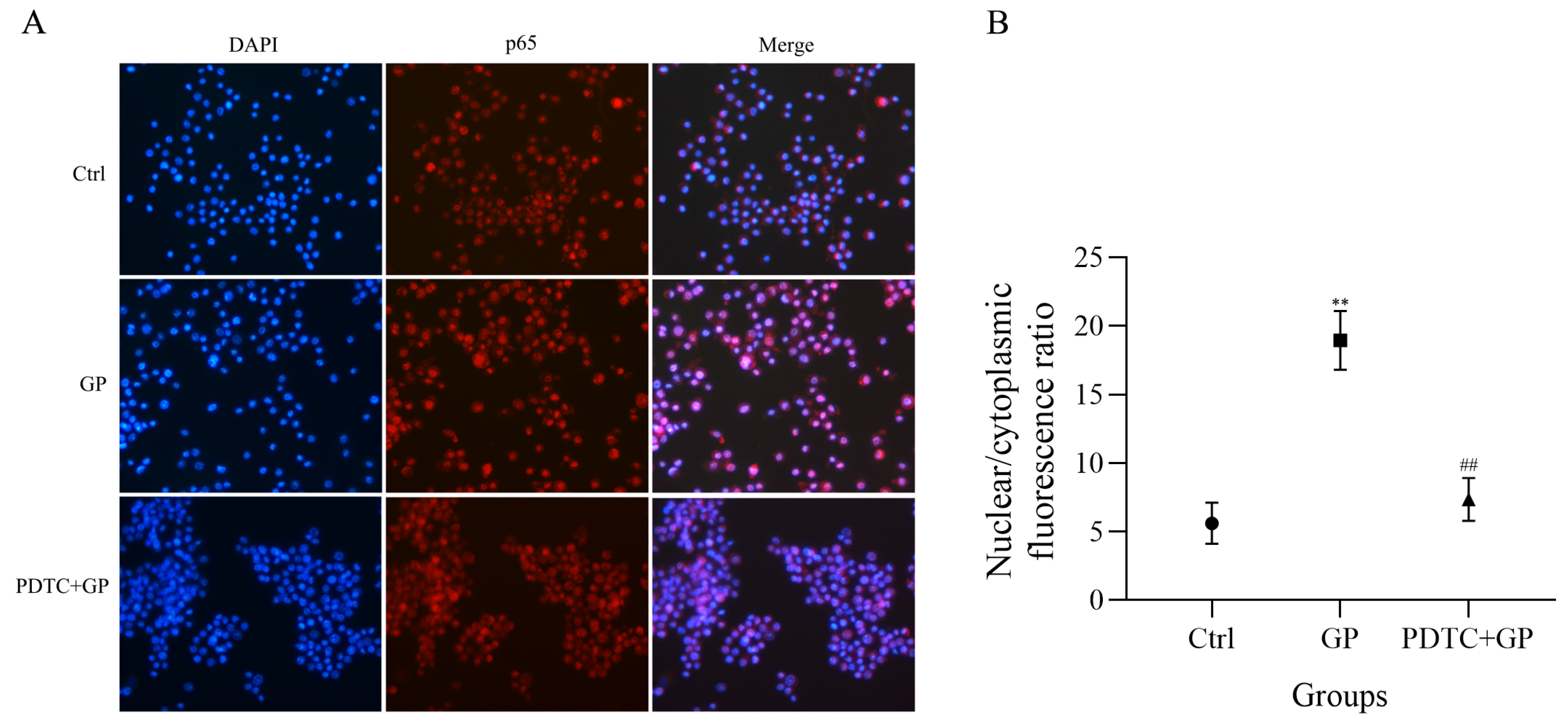 3.8. Facilitation of the Nuclear Translocation of NF-κB p65 by GP