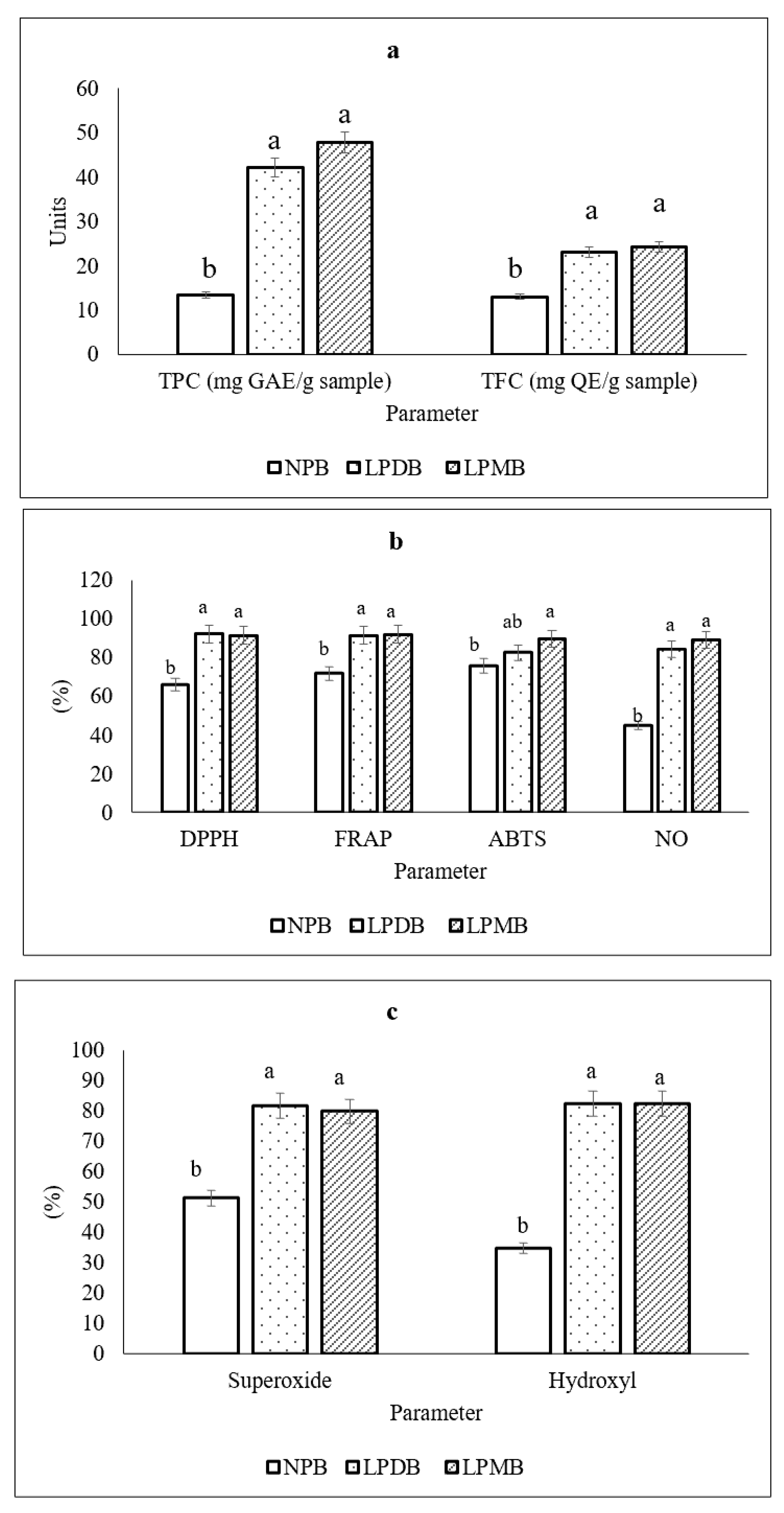 3.4.2. Total Polyphenol and Total Flavonoid Content