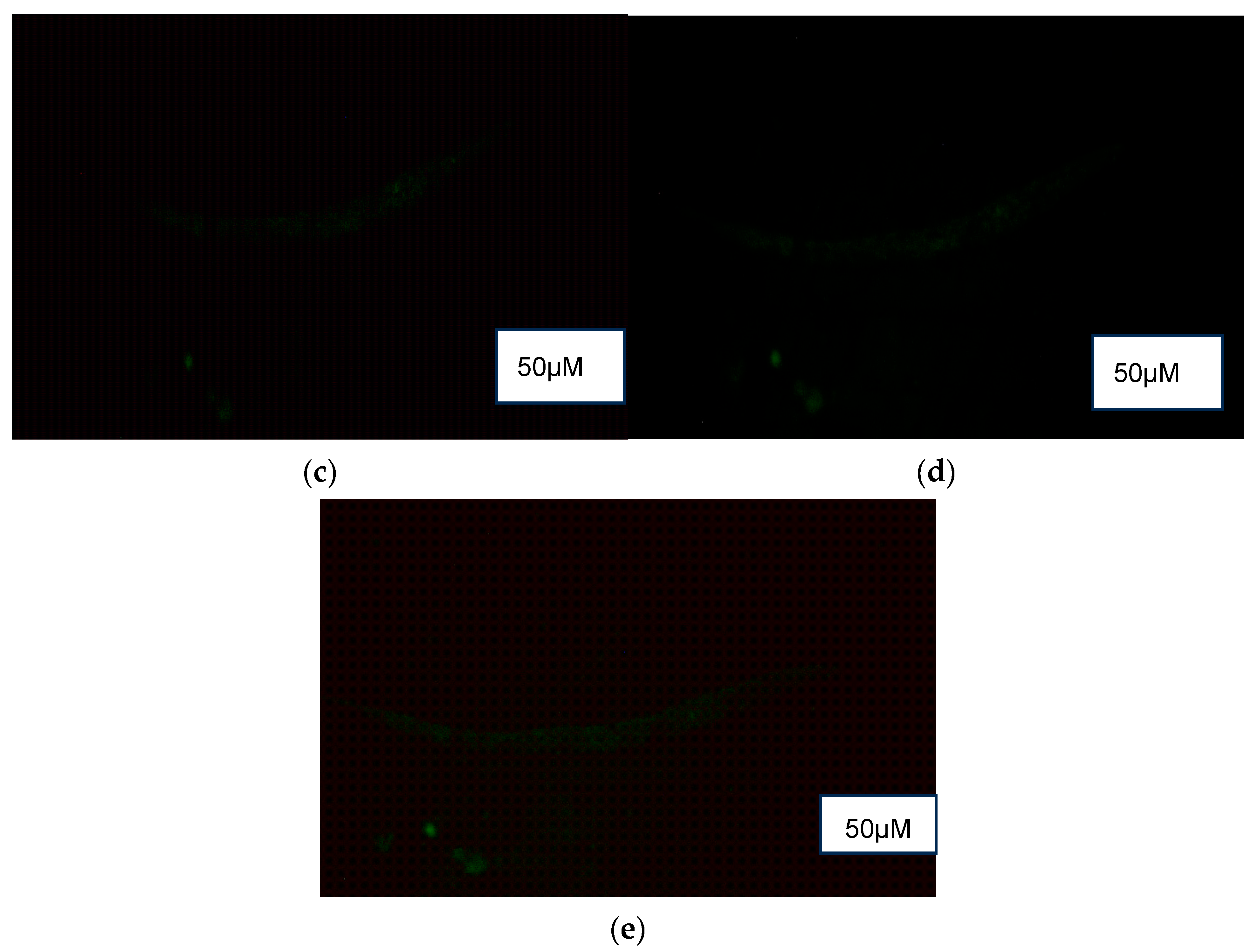 - Zhang, J.; Chen, R.; Yu, Z.; Xue, L. Superoxide Dismutase (SOD) and Catalase (CAT) Activity Assay Protocols for Caenorhabditis elegans. Bio-Protocol 2017, 7, e2505. [Google Scholar] [CrossRef]