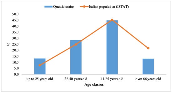 Distribution of the different age groups considered in the questionnaire with respect to ISTAT demographic values.