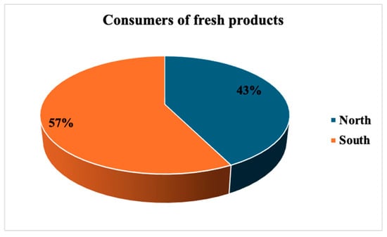 Global fish consumption per capita has increased from 9 kg to 20.5 kg (122%) between 1990 and 2018 []. The European Union is the world’s largest importer, with more than half of seafood originating from Norway, the UK, China, Morocco, and Ecuador, where fishing supports many local communities. Italy covers about 8000 km of coastline (fifth longest in Europe), and the main landing coasts include Sicily, Marche, Veneto, the southern Tyrrhenian coast, and Puglia. However, the greatest demand for seafood products is related to fish farms (trout, sea bass, sea bream, mussels and clams), instead of direct landings []. In 2019, the average per capita consumption by Italians, according to data compiled by the association SOS Italian Fish, was about 28 kg of fish per year, higher than the European average. Nevertheless, this figure is decidedly low when compared to that of other European nations with a similar coastline, such as Portugal (60 kg); []. Two-thirds of the national demand for fish is met from the rest of the oceans, particularly from developing countries []. A study conducted by Unioncamere Puglia, shows that 57.1% percent of Italians consume fish at least once a week, especially younger people []. In addition, Italians’ consumption of fresh fish accounts for nearly a quarter of the total in the 12 countries belonging to the European Union (Germany, Denmark, Spain, France, Hungary, Ireland, Italy, the Netherlands, Poland, Portugal, Sweden and the United Kingdom), and from 2018 to 2019 it increased by 2% in both volume and value, with a five-year peak in the latter of 3.21 million [].