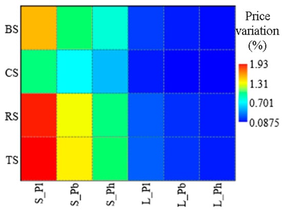 Based on the elements reported above, an estimate of the implementation costs of a BT for each scenario has been evaluated. For the four supply chains, the implementation of the BT was evaluated on large (L) and small (S) scale: the first refers to fish production on a national scale; the second, instead, refers to more limited productions attributable to more circumscribed local realities and compatible with regional production. In the latter case, reference was made to an estimate of fish production equal to approximately 6.7% of national production, considering that the largest contribution to national fish production comes from 15 Italian Regions that fall within the scope of the European Maritime, Fisheries and Aquaculture Fund []. Table 2 shows the national quantities produced [] and the estimated regional quantities per single supply chain and the variation in prices used subsequently to develop a sensitivity analysis.